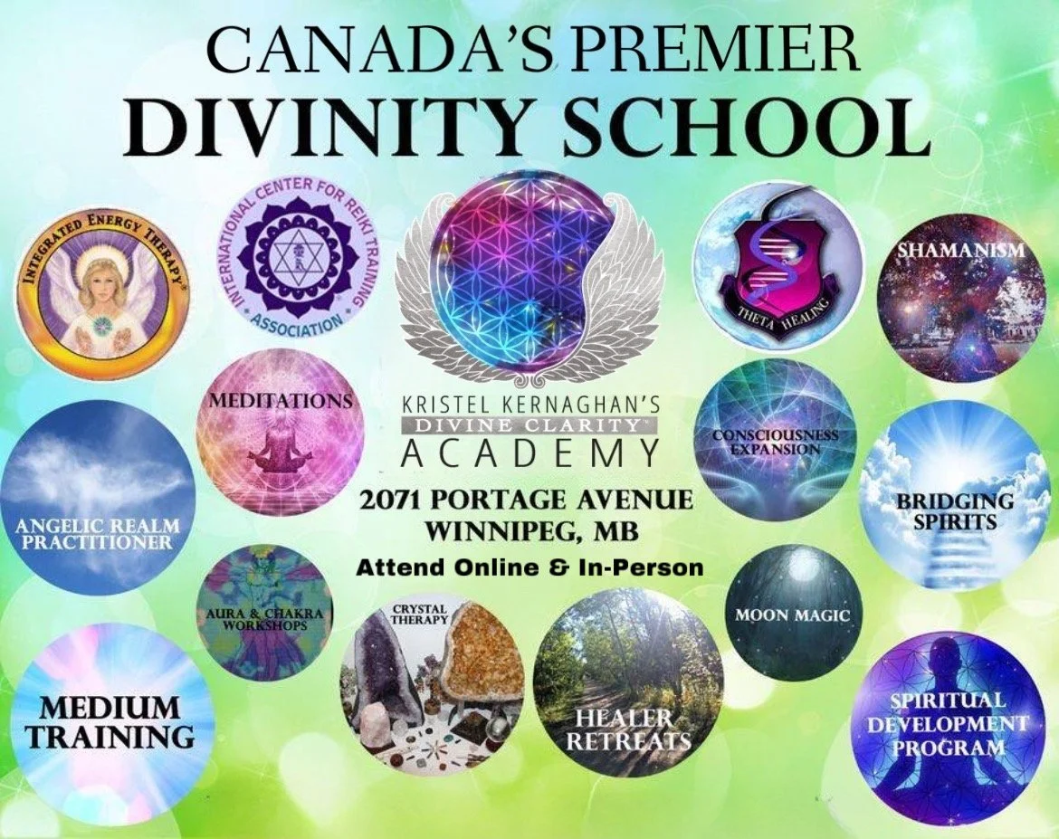 Kristel Kernaghan’s Divine Clarity Academy offers around 50 classes and events each year, including certification programs in Energy Healing, Intuition Development, Hypnotherapy, Spiritual Development, and Mediumship Training.